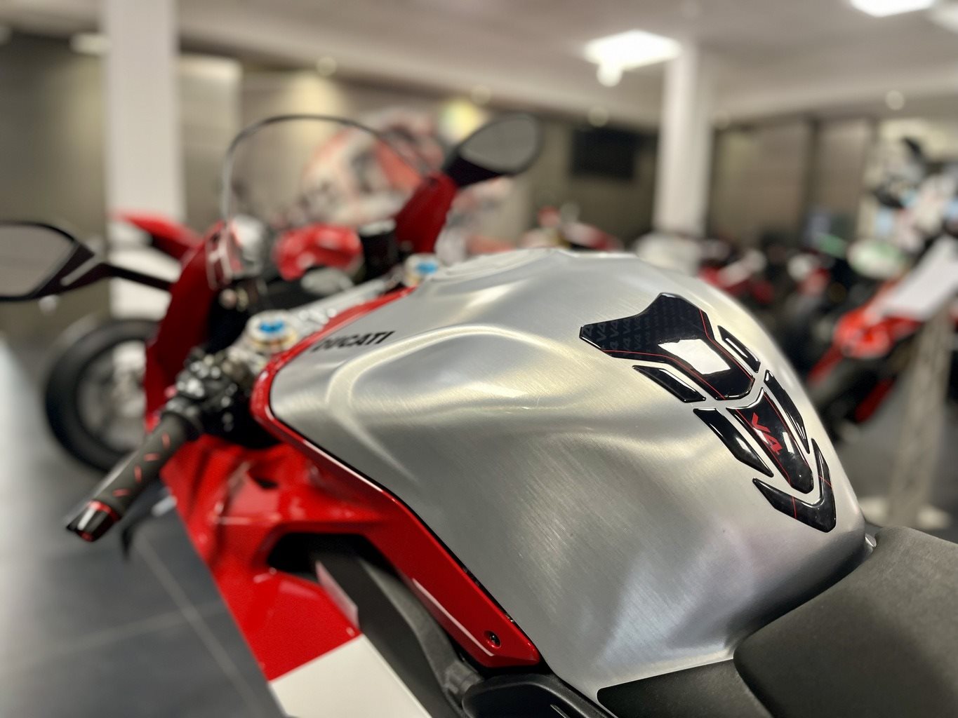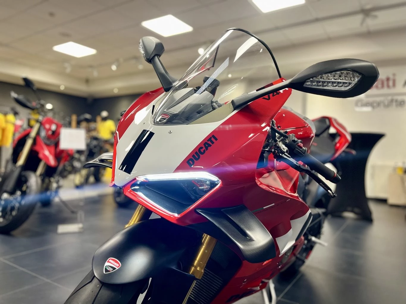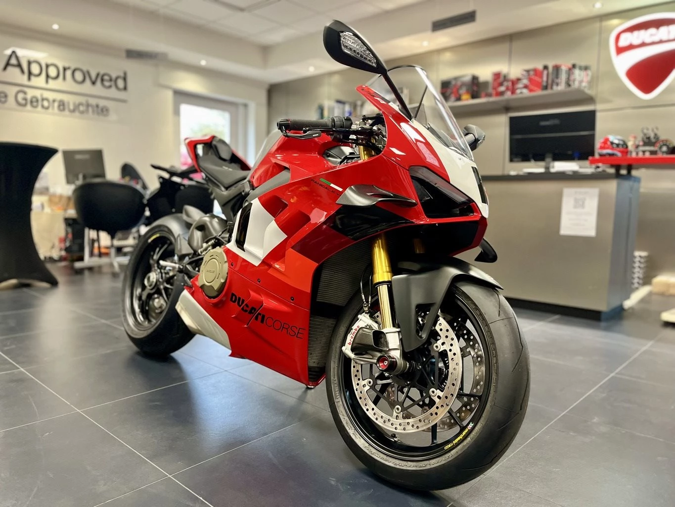 Ducati Panigale V4 R - gepflegt - frische Durchsicht - Carbon Schwingschleifschutz - Carbon Bremsbelüftung - Carbon Krümmerhitzeschutz - kurzer Kennzeichenhalter Evotech - LED Blinker DP - Brems & Kupplungshebel DP - Bremshebelschutz DP - Griffgummis DP - Tankpad Finanzierung und/oder Inzahlungnahme gerne möglich! Holen Sie sich bei uns Ihr persönliches Angebot ein. Wir bieten Ihnen: - Finanzierungen mit oder ohne Anzahlung von 12-72 Monaten Laufzeit! - bundesweiter Versand für 119,- - eine Inspektion und Kontrolle sämtlicher Verschleißteile vor Auslieferung. - TÜV für mindestens eine Saison, sonst neu! - 1 Jahr Garantie auf viele unserer gebrauchten Fahrzeuge! - Inzahlungnahme jeglicher Fabrikate möglich! - einen fairen Service, denn Motorradfahren soll doch einfach nur Spass machen.